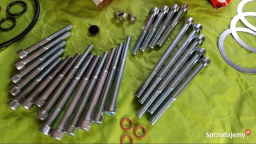 - kpl śrub na cały silnik... zupełnie co innego niż w handlu... Uwaga! różne opcje długości dla lewej pokrywy i dla korpusu w późniejszych rocznikach (EM 251)