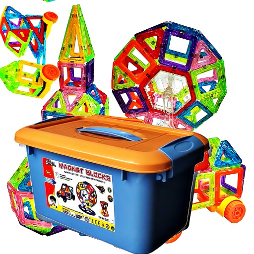 ZESTAW KLOCKÓW MAGNETYCZNYCH - KONSTRUKCYJNE PŁYTKI 128 elementów