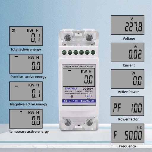 1-fazowy, z wyświetlaczem LCD, na szynę DIN