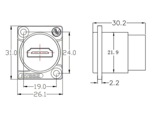 Gniazdo tablicowe HDMI ze złoconymi stykami do obudowy.