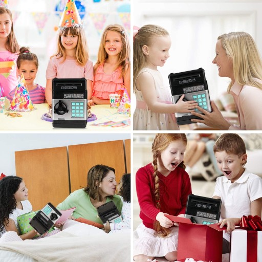Łatwość użycia - sejf na monety jest prosty w użyciu i poradzi sobie z nim dziecko. Wystarczy wrzucać monety do otworu i jak najrzadziej opróżniać skarbonkę, aby zebrać oszczędności.