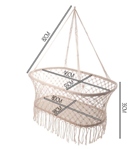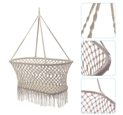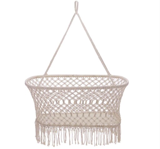 Wykonana z bawełnianego sznurka wisząca kołyska w stylu BOHO, świetnie wpasuje się do każdego wnętrza jako alternatywa dla dużych, ciężkich łóżeczek dziecięcych zajmujących mnóstwo miejsca.