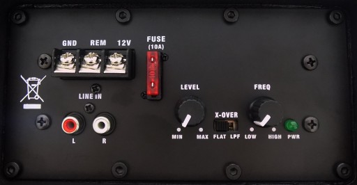 Subwoofer zaopatrzony został we wbudowany wzmacniacz na tranzystorach bipolarnych, który zapewnia duże pokłady mocy. Dzięki niemu skrzynię można bezpośrednio podłączyć do wyposażonego w wyjście RCA radia, tworząc kompletną konstrukcję audio gwarantująca głębokie mocne brzmienie.