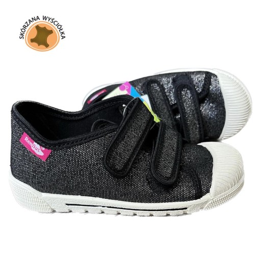 REN BUT trampki, sneakersy czarny brokat ze skórzaną wkładką