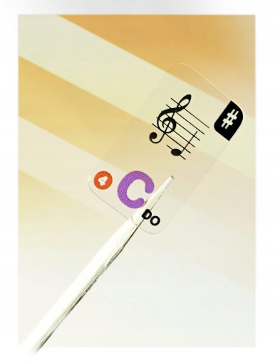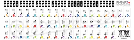 Etykiety posiadają notacje C-D-E-F-G-A-B,zapis nutowy, oraz DO-RE-MI-FA-SOL-LA-SI-DO idealne dla wokalistów