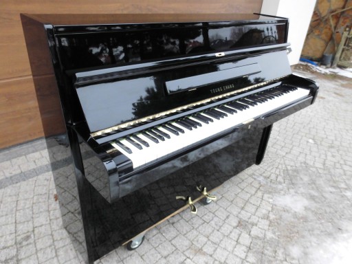 Pianino Young chang U109 z koreańskiej fabryki w czarnym oryginalnym poliestrze ,w super stanie technicznym i muzycznie z pieknym szlachetnym brzmieniem oraz rewelacjnie procującą mechaniką firmy Royale Germany, Pianino nastrojone na gotowo 440hz do gry i wyregulowane z transportem i ze wstawieniem na niski parter (max 5 schodów) i pisemną 12 miesięczną rękojmią na trzymanie stroju i sprawne działanie mechanizmu młoteczkowego. Wymiary 140x109x55cm