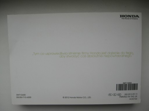 Na innej mojej aukcji można zakupić oryginalne Etui Honda do przechowywania instrukcji