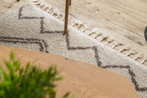 BERBER to jedyna w swoim rodzaju kolekcja dywanów typu „Shaggy”. Proste, geometryczne wzory oraz plecione na końcach frędzle nawiązują do stylu boho.Ich włosie jest wysokie, grube i sprężyste, dzięki czemu są bardzo puszyste i miękkie w dotyku. Dodatkowo kolorystyka utrzymana w odcieniach kremu, beżu, szarości i różu sprawia,że dywany BERBER nadają wnętrzom niesamowitej przytulności i ciepła. Użyte do produkcji, niezawodne włókno polipropylenowe nadaje im wysoką jakość i wytrzymałość.