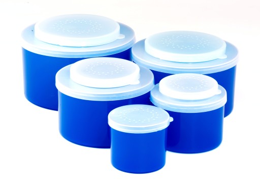 Pojemniki posiadają na spodzie nacechowaną pojemność w litrach.