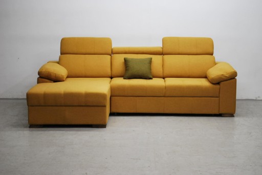 Narożnik jest fabrycznie nowy wykonany z wysokiej jakości tkaniny strukturalnej o średnim splocie - MEGAN. Megan jest nowoczesną plecionką, o wyrazistej strukturze i wrażeniu trójwymiarowości. Tkanina jest miła w dotyku, Wyczuwalna w dotyku struktura materiału jest efektem grubego splotu użytej do tkania przędzy. W praktyce to przede wszystkim walor estetyczny tkaniny, a także czynnik zwiększający jej trwałość. Dzięki zastosowanej przy jej produkcji nanotechnologii Nano Block, cząsteczki wody i innych płynów pozostają na powierzchni tkaniny, ułatwiając czyszczenie zabrudzeń. Do zebrania rozlanych cieczy wystarczy jedynie sucha szmatka lub papierowy ręcznik., materiał bardzo miły w dotyku.