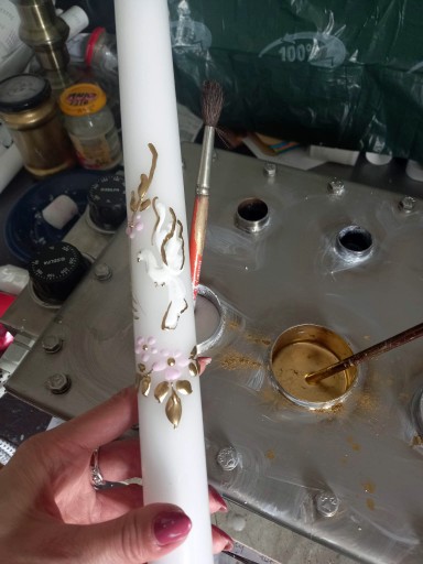Dekoracja świecy malowana ręcznie gorącą płynną parafiną z