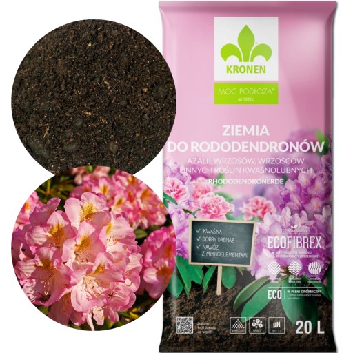 PODŁOŻE ZIEMIA DO RODODENDRONÓW I WRZOSÓW z nawilżaczem kompostem 20l Kronen