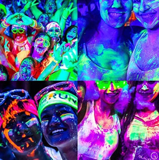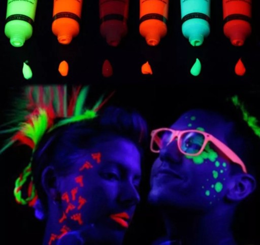 Farby idelanie nadają się na imprezy dyskotekowe, festiwalowe, halloweenowe itp. Można je używać wszędzie gdzie znajduje się oświetlenie UV. Bardzo dobrze przylegają do skóry i są odporne na rozmazywanie. Są całkowicie bezpieczne i nietoksyczne dla Naszej skóry. By je usunąć wystarczy mydło z wodą.