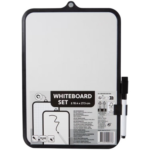 Mały format tablicy suchościeralnej do zamocowania na metalowej powierzchni lub ścianie. Można jej używać wielokrotnie dzięki ścieralnemu tuszowi. Świetna na szybkie notatki i przypominajki w korytarzu, kuchni lub pracy
