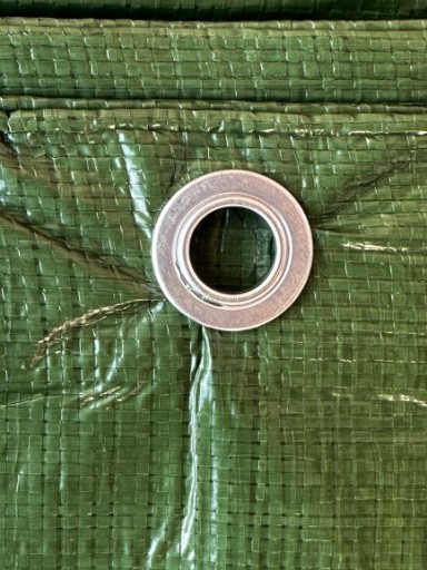 Plandeka wyposażona została w specjalne oczka, które są wykonane z aluminium, dzięki czemu nie rdzewieją i są wytrzymałe bez względu na warunki pogodowe.
