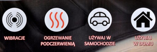 - 5 programów masujących: funkcja wibrująca, rolująca, ugniatająca, pulsacyjna, automatyczna, podgrzewanie odcinka lędźwiowego uruchamiana niezależnie od używanego programu