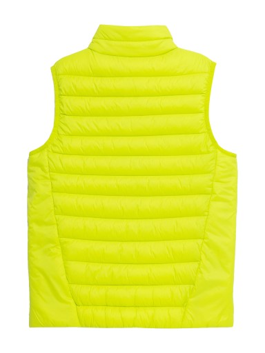 Bezrękawnik puchowy pikowany bez kaptura chłopięcy z najnowszej kolekcji 4F. Wypełniony puchem syntetycznym, który wraz z użytą technologią 4Warm zapewni komfort cieplny w chłodniejsze dni. Materiał zewnętrzny pokryty hydrofobową powłoką, która ochroni kurtkę przed wilgocią.