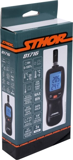 Czujnik kontroluje zarówno wilgotność względną jak i temperaturę. Na podstawie tych wskazań mikroprocesor potrafi obliczyć punkt rosy oraz tzw. temperaturę mokrego termometru. Prosta obsługa, duże cyfry na wyświetlaczu, szereg funkcji ułatwiających pracę oraz wyprofilowana, idealnie wpasowująca się w rękę obudowa sprawiają, że praca tym miernikiem jest łatwa i przyjemna.