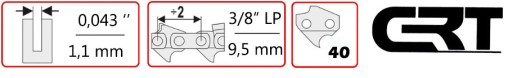 Współpracuje z prowadnicami o długości roboczej 25 cm [ 10" ], podziałce 3/8" oraz szerokości rowka 1,1 mm. Stosowanych powszechnie w małych pilarkach i okrzesywarkach jak: