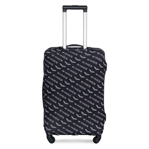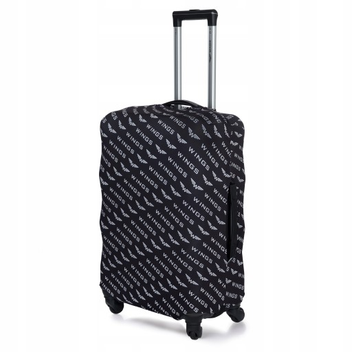 Pokrowce wykonane są z elastycznego i mocnego poliestru. Zapinane na 3 napy od spodu walizki, posiadają rozciągliwy pasek z gumy, który zabezpiecza przed zsunięciem. Otwory na teleskopową rączkę i boczny uchwyt.