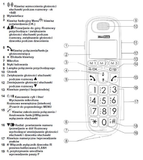W telefonie znajdziesz mnóstwo przydatnych udogodnień: funkcję głośnomówiącą, budzik, zegar, identyfikację numeru dzwoniącego oraz 12 języków w menu. Telefon jest kompatybilny z aparatami słuchowymi.