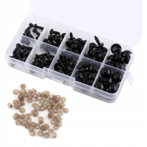 - 1 pudełko (100 sztuk) x zabawkowe oczy z uszczelkami