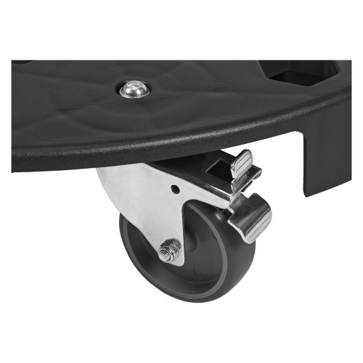 Przenośne rozwiązanie do przechowywania, dzięki któremu możesz swobodnie przemieszczać opony w garażu. Jedno kółko jest wyposażone w możliwość blokady zapewniającą stabilniejsze przechowywanie.