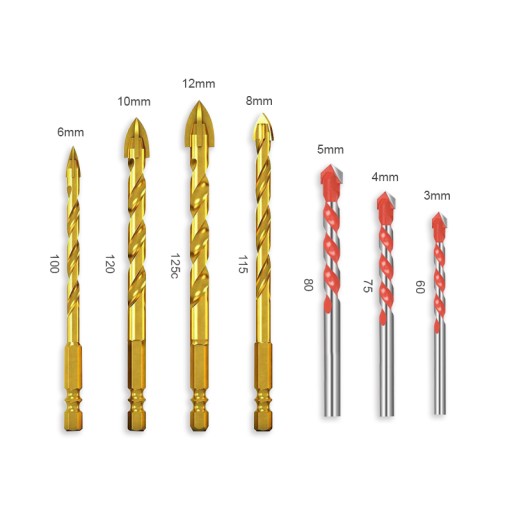 ✅ Zestaw zawiera łącznie 7 wierteł o rozmiarach: