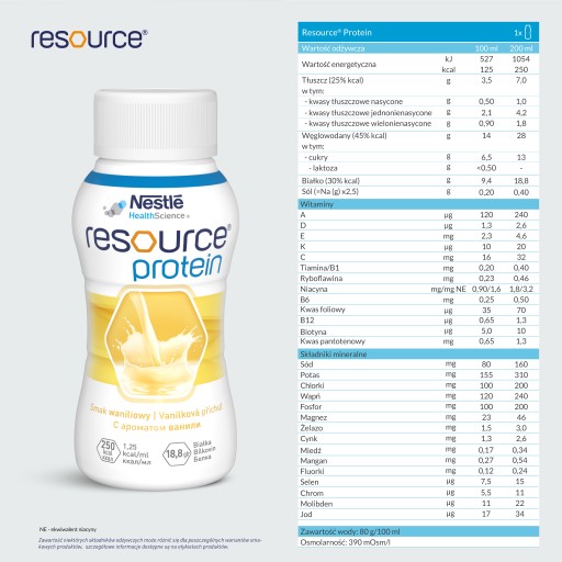 NESTLE RESOURCE PROTEIN specjalistyczny preparat odżywczy 8x200ml smak waniliowy dla osób ze zwiększonym zapotrzebowaniem na białko