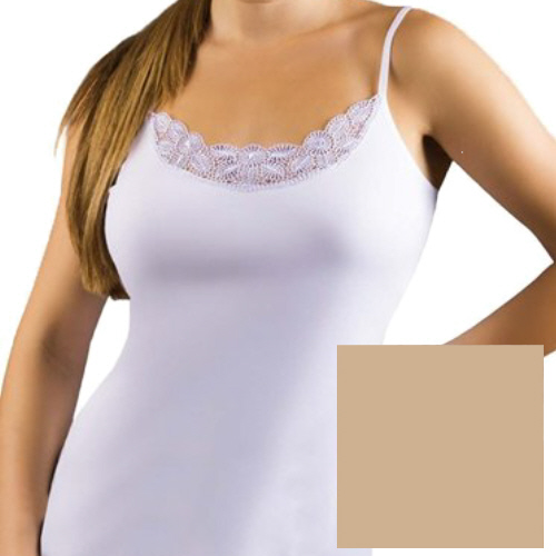 Klasyczna koszulka na wąskie ramiączko ozdobiona delikatną koronką.