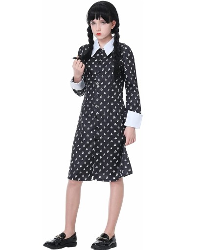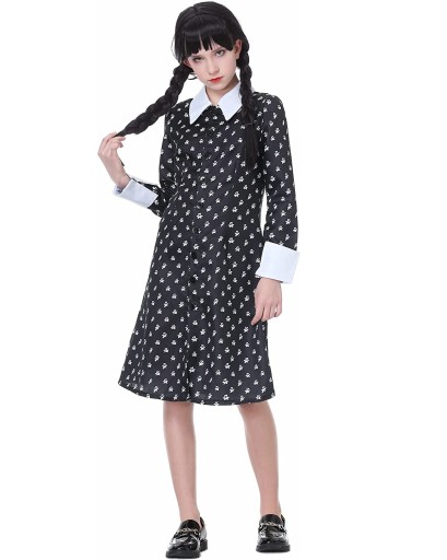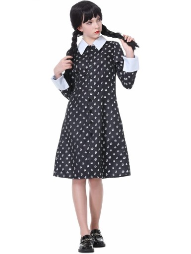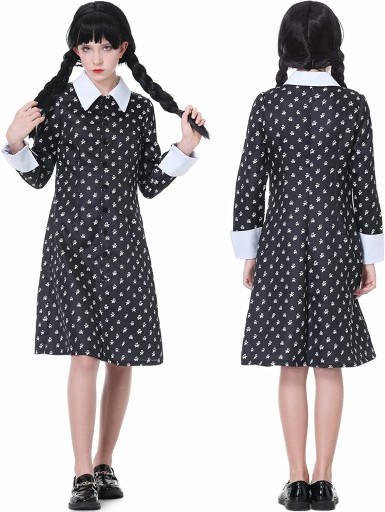 STRÓJ KOSTIUM SUKIENKA WEDNESDAY ADDAMS COSPLAY