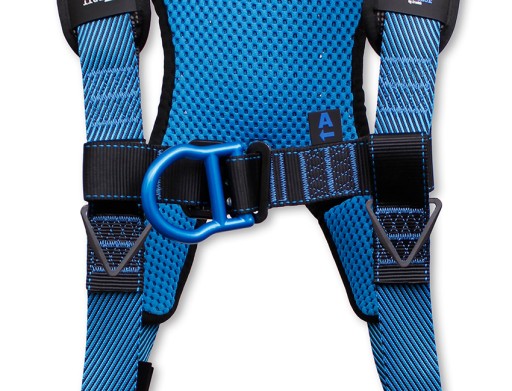 SZELKI BEZPIECZEŃSTWA EN 361: stalowy pierścień zaczepowy w części grzbietowej i piersiowej oznakowane symbolem „A”.