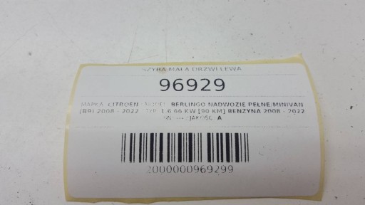 SZYBA DRZWI LEWA CITROEN BERLINGO II 2009 EU
