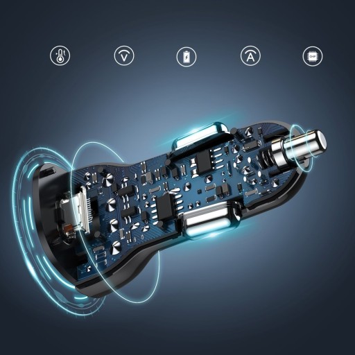 Ładowarka o mocy wyjściowej aż 38 watów zapewnia bardzo szybkie ładowanie. Korzystając z portu USB Typ C, już w 45 minut możesz napełnić w połowie baterię urządzenia. To niemal 3 razy szybsze przekazywanie energii niż w standardowych ładowarkach stosowanych w samochodach. Mimo tak dużej mocy nie musisz obawiać się o bezpieczeństwo – nad rozprowadzaniem prądu w optymalny sposób czuwa wewnętrzny chip.