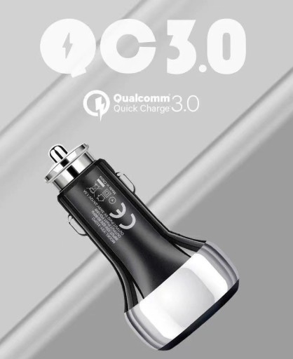 Szybka ładowarka samochodowa USB Typ C PD / USB QC3.0 3A 38W czarna.