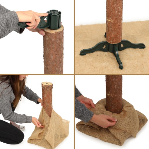 ⭐NATURALNY PIEŃ SOSNOWY – sztuczna choinka jest osadzona na podwójnie impregnowanym pniu sosnowym. Dzięki natryskowej impregnacji na długo zachowuje on niezmienny wygląd. Dodatkowo jest przyozdobiony pięknym jutowym materiałem.