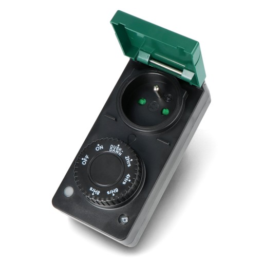 Wyłącznik czasowy sterowany analogowo, przeznaczony do automatycznego włączania i wyłączania urządzeń. Wbudowany czujnik zmierzchu pozwoli sterować oświetleniem według pory dnia - uruchomi lampę, gdy słońce zajdzie i wyłączy ją przy wschodzie słońca. Stopień wodoodporności programatora to IP44, dzięki czemu idealnie sprawdzi się do sterowania oświetleniem zewnętrznym.