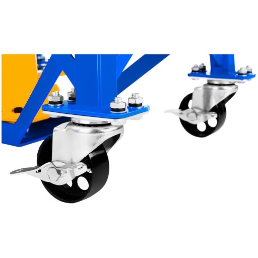 4 skrętne kółka są udogodnieniem zwiększającym mobilność. W razie potrzeby łatwo przemieścić podnośnik wraz z reperowanym motocyklem bez konieczności jego zdejmowania. Jest to bardzo praktyczne np. w serwisach motoryzacyjnych. 2 z kółek mają hamulce (unieruchamiają podnośnik).