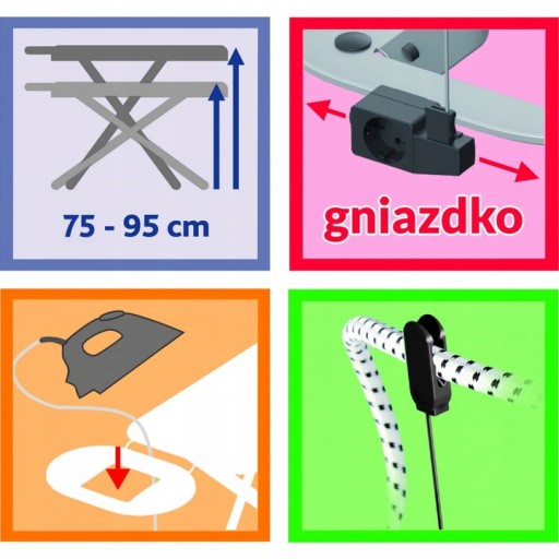 Deska z gniazdkiem Star Plus jest wyposażona w rozkładaną antenę na przewód od żelazka, co zapobiega plątaniu się przewodu podczas prasowania.