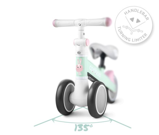 Cariboo Friends to jedyny jeździk z regulacją kąta nachylenia kierownicy. W jednym prostym ruchu zmienisz położenie kierownicy względem siodełka tak, aby zapewnić Twojemu dziecku maksymalny komfort i wygodę.