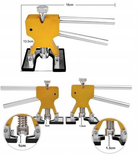 Usuwanie uszkodzeń przy pomocy tego zestawu jest bardzo proste i bez problemu poradzi sobie z nim każdy, zarówno amator chcący samodzielnie naprawić wgniecenia, jak i profesjonalista w dziedzinie napraw karoserii. Zestaw wykonany został z wysokiej jakości materiałów, z niezwykłą dbałością o szczegóły, co zapewnia długą pracę poszczególnych elementów.