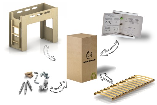 - W Zestawie: Łóżko, stelaż, drabinka, zestaw śrubek i akcesoriów montażowych, fiolka z nasionami sosny
