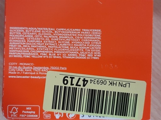 AQUA/WATER/EAU, CAPRYLIC/CAPRIC TRIGLYCERIDE, GLYCERIN, BUTYLENE GLYCOL, BUTYROSPERMUM PARKII (SHEA) BUTTER, CETEARYL ALCOHOL, HYDROGENATED POLYISOBUTENE, POLYACRYLAMIDE, CETYL PALMITATE, BISABOLOL, C13-14 ISOPARAFFIN, CAFFEINE, CETEARETH-20, DIMETHYLMETHOXY CHROMANOL, ECHINACEA PURPUREA EXTRACT, GLYCINE, HYDROLYZED CITRUS AURANTIUM DULCIS FRUIT EXTRACT, LAURETH-7, MAURITIA FLEXUOSA FRUIT OIL, MICA, PANTHENOL, PANTOLACTONE, SILICA, SODIUM LACTATE METHYLSILANOL, SYNTHETIC FLUORPHLOGOPITE, TIN OXIDE, XANTHAN GUM, CHLORPHENESIN, PHENOXYETHANOL, SALICYLIC ACID, PARFUM/FRAGRANCE, FD&C BLUE N°1 (CI 42090), FD&C RED N°40 (CI 16035), FD&C YELLOW N°5 (CI 19140), TITANIUM DIOXIDE (CI 77891)