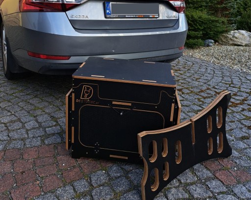 - W zestawie z nogami do montażu stolika lub podwyższenia boxu