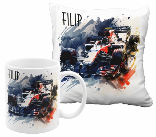 ☘️ Zestaw Kubek Poduszka Formuła 1 wyścig F1 z imieniem ☘️