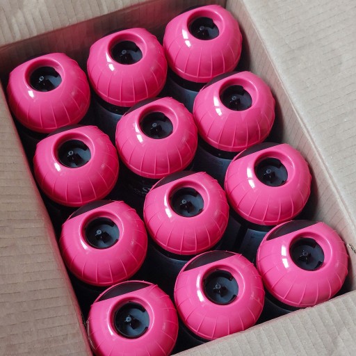 W dostawie otrzymasz 12 puszek farby w kolorze różowym o pojemności 500 ml każda.