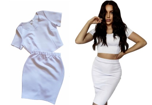 Spódniczki MIDI ołówkowej + krótkiego topu z krótkim rękawem.