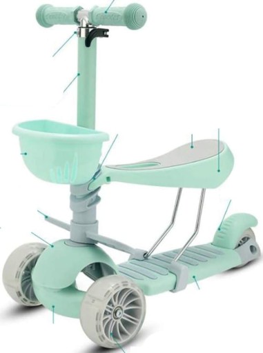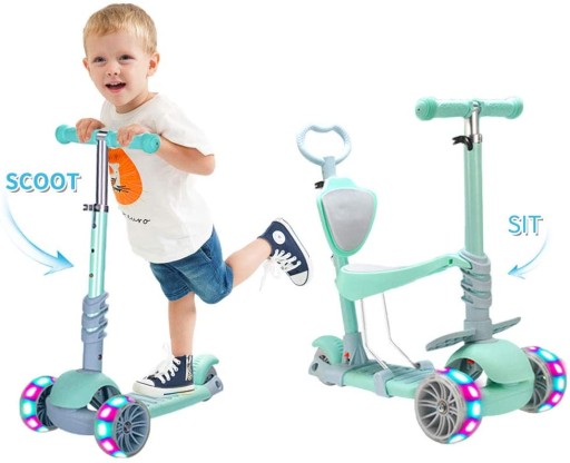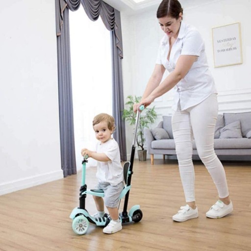 Scooter 5w1 to innowacyjna hulajnoga dla dzieci od 1 roku życia do 6 lat i maksymalnym obciążeniu 50 kg. Idealne rozwiązanie dla aktywnych dzieci, które są w ciągłym ruchu. Zapewnisz swojemu dziecku nie tylko świetną zabawę, ale również aktywność na świeżym powietrzu, która jest niezwykle ważna dla każdego smyka. Nowoczesny design i doskonałe materiały sprawiają, że hulajnoga jest niezwykle lubianym i popularnym modelem.