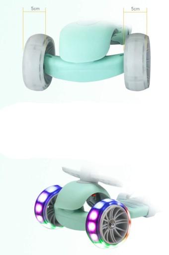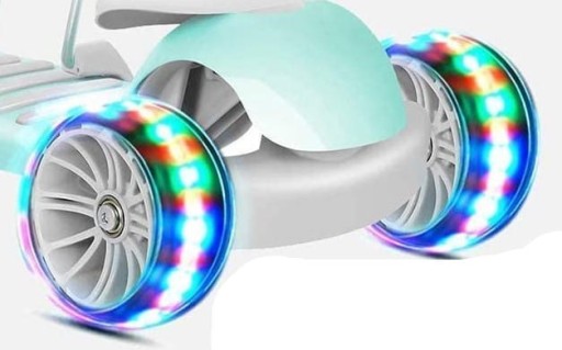 Kółka z diodami LED: 3 kolorowe, świecące koła LED. Podczas jazdy na hulajnodze, koła świecą w szerokiej gamie migających kolorów i nadają jeździe oryginalną i zabawną nutę. Dzieci uwielbiają tę cechę, która sprawia, że hulajnoga jest wyjątkowa. Zapewni dziecku wielogodzinną zabawę.