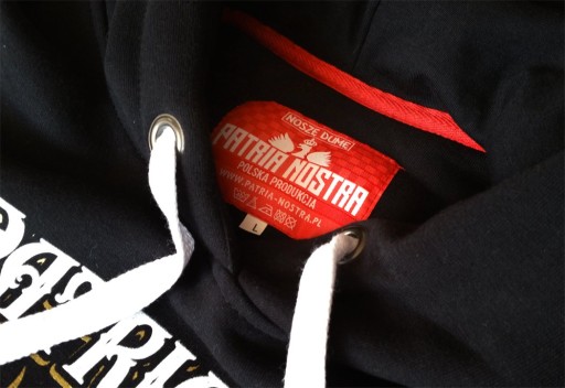 Bluzę urozmaica czerwona tasiemka wzmacniająca kołnierzyk, a także firmowe dodatki: 2 żakardy i elegancka naszywka na ramieniu. Bluza posiada specjalny, wykonany od podstaw krój, komfortowo układając się na ciele. Uszyta została z najwyższej jakości materiałów od polskich dostawców.
